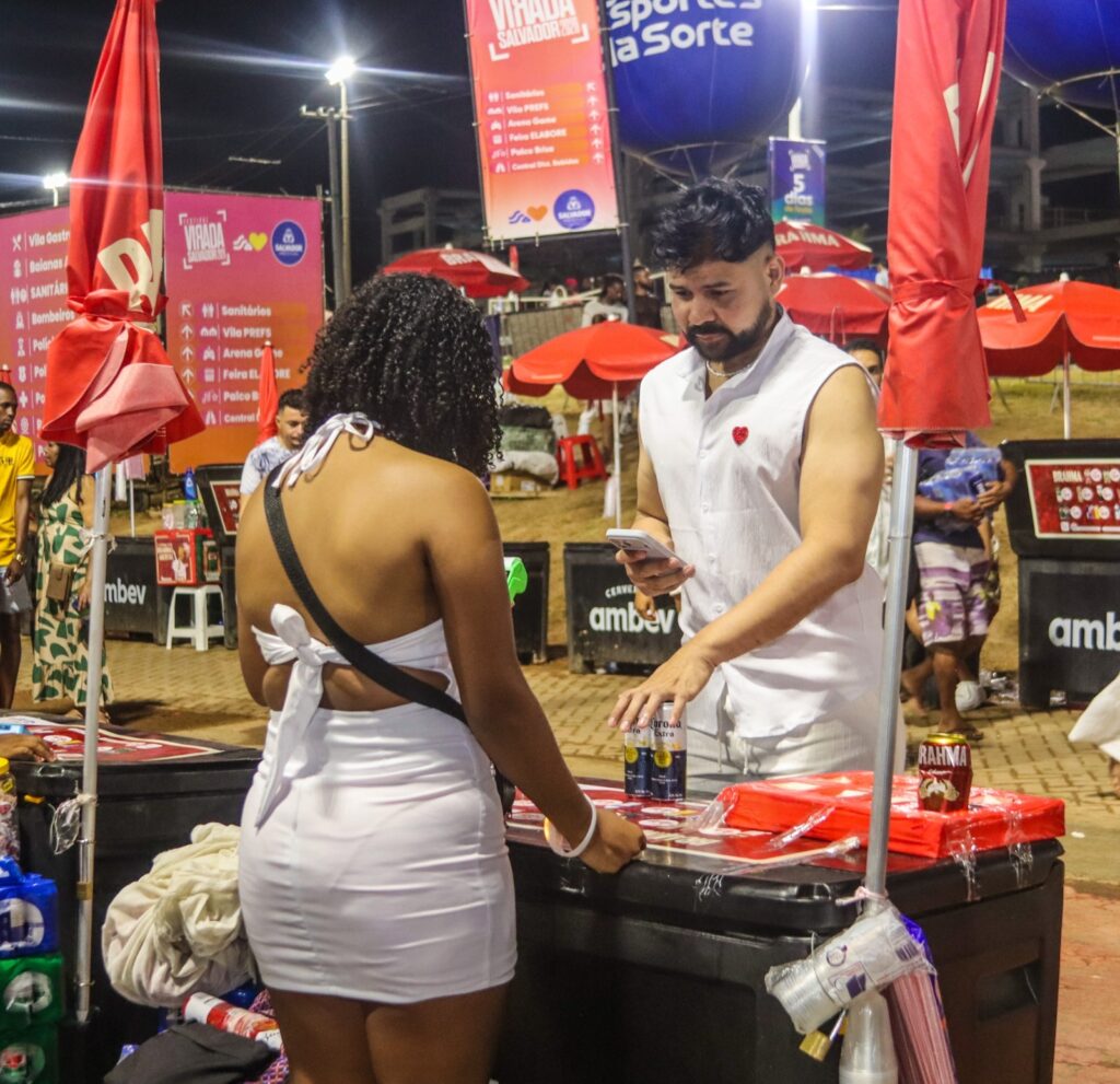 Os ambulantes que trabalharam durante os cinco dias do Festival Virada Salvador 2026, na Arena O Canto da Cidade, na orla da Boca do Rio, em Salvador, comemoraram os avanços proporcionados pela Prefeitura para valorização da categoria. Nesta edição da festa, os vendedores foram beneficiados com refeições em um Restaurante Popular montado no espaço do festival, com passagens de ônibus para a arena, banheiros climatizados para banho, além de serviço de acolhimento para os filhos e kits de vendas completos, incluindo cadeados dos reservatórios de bebida para assegurar as mercadorias.