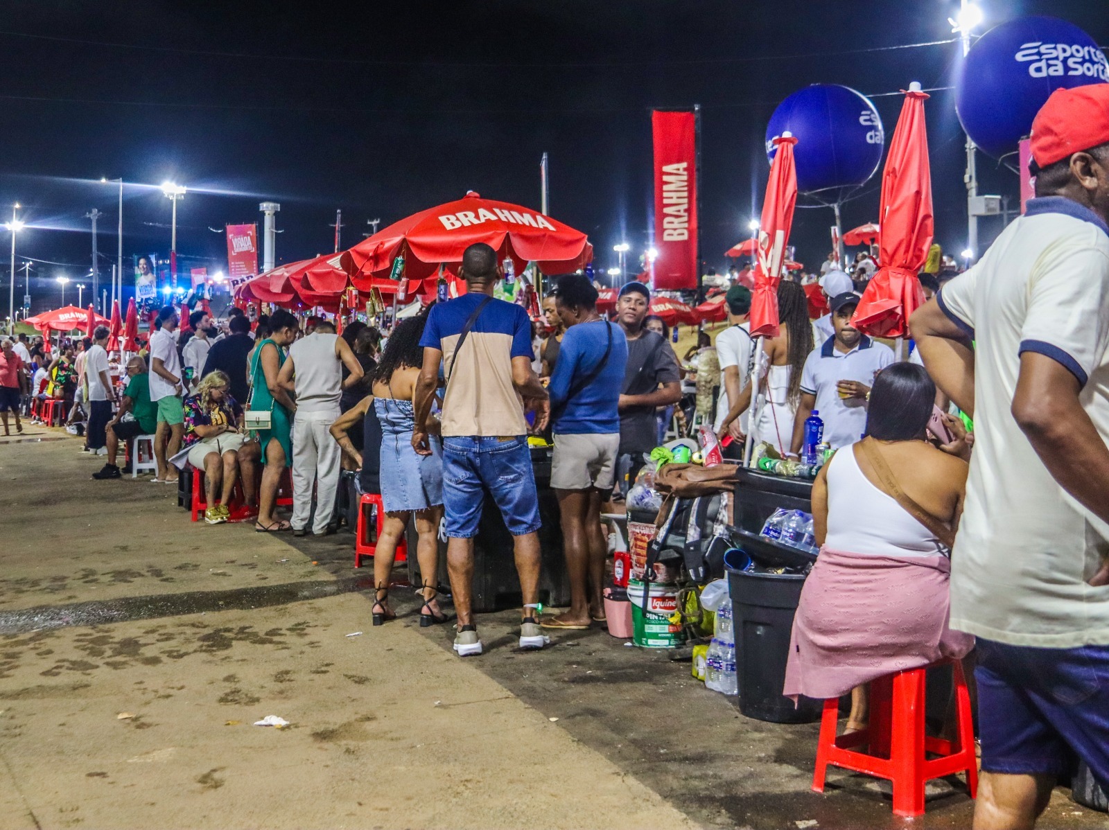 O clima entre os comerciantes nesta quarta-feira (31), último dia do evento de Réveillon, era de satisfação por conta das melhorias nas condições de trabalho e, consequentemente, do crescimento exponencial das vendas. De acordo com a Secretaria Municipal de Ordem Pública (Semop), 600 trabalhadores informais foram cadastrados para atuar nos festejos. Desse total, 505 foram ambulantes de isopor e, entre os demais, 60 foram baleiros, 10 baianas de acarajé, 10 vendedores em food trucks e 15 pipoqueiros.