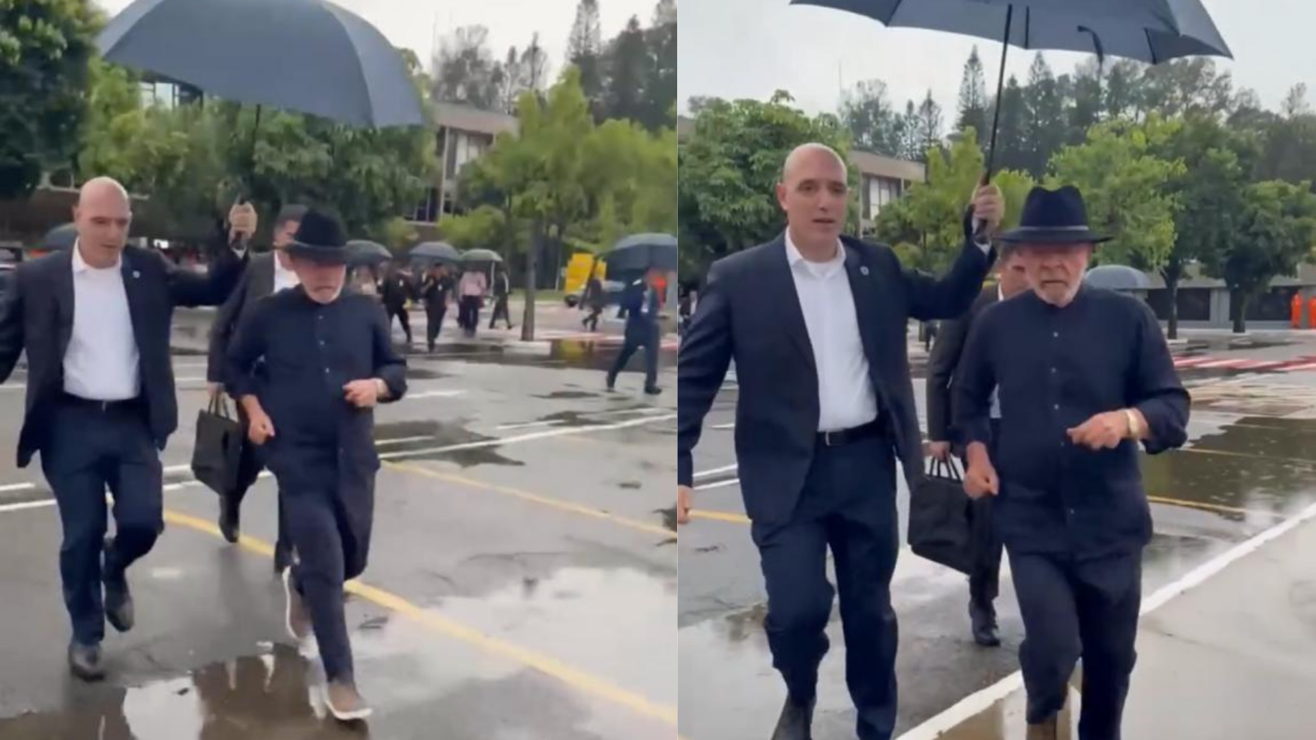 O registro chamou a atenção dos internautas e mostra Lula correndo à frente, enquanto os seguranças o acompanham logo atrás.