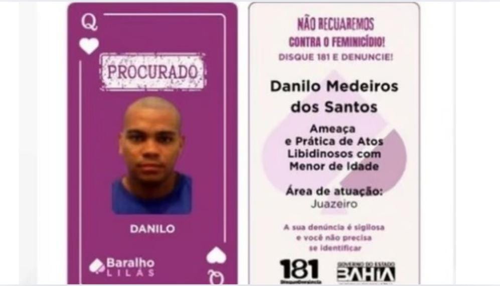 Lançado na última sexta-feira (12), o ‘’Baralho Lilás’’, plataforma de combate à violência contra a mulher da Secretaria da Segurança Pública (SSP), teve o seu primeiro foragido localizado pela Polícia.