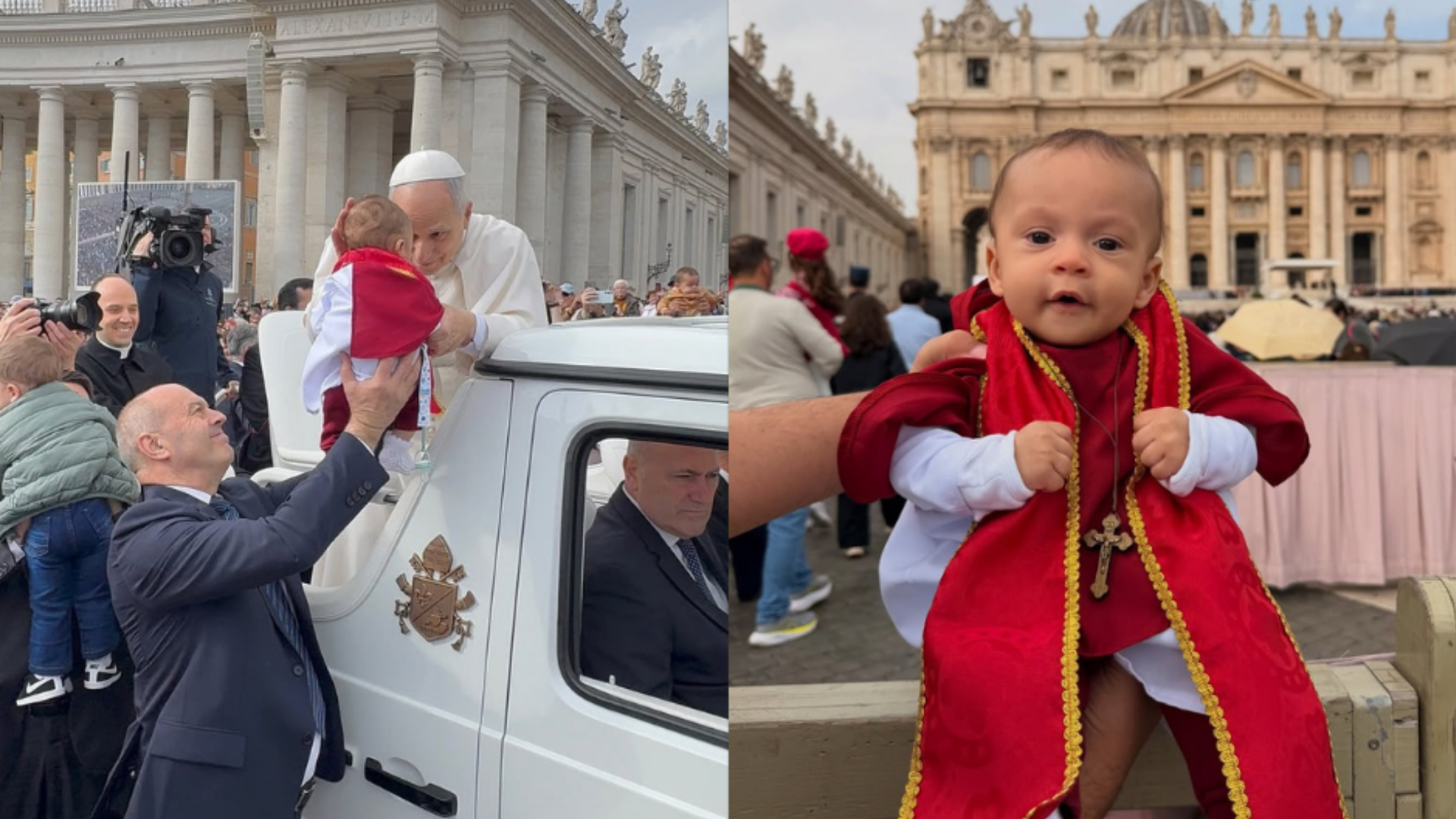O bebê chamou atenção por estar vestido como o papa, o que pode ter ajudado a aproximar o pontífice. Durante a audiência, Leão XIV pegou a criança no colo e concedeu a bênção.