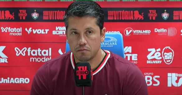 O técnico também admitiu que o time está falhando, mas reforçou sua disposição em seguir no comando do Vitória. “Entendo e reconheço que nós estamos errando, falhando muito, que hoje foi uma noite trágica, uma noite vergonhosa. Mas em relação, se for me perguntar em relação permanência ou demissão, tem medo ou não tem medo? Cara, se eu tivesse medo eu não tinha vindo aqui”, disparou.