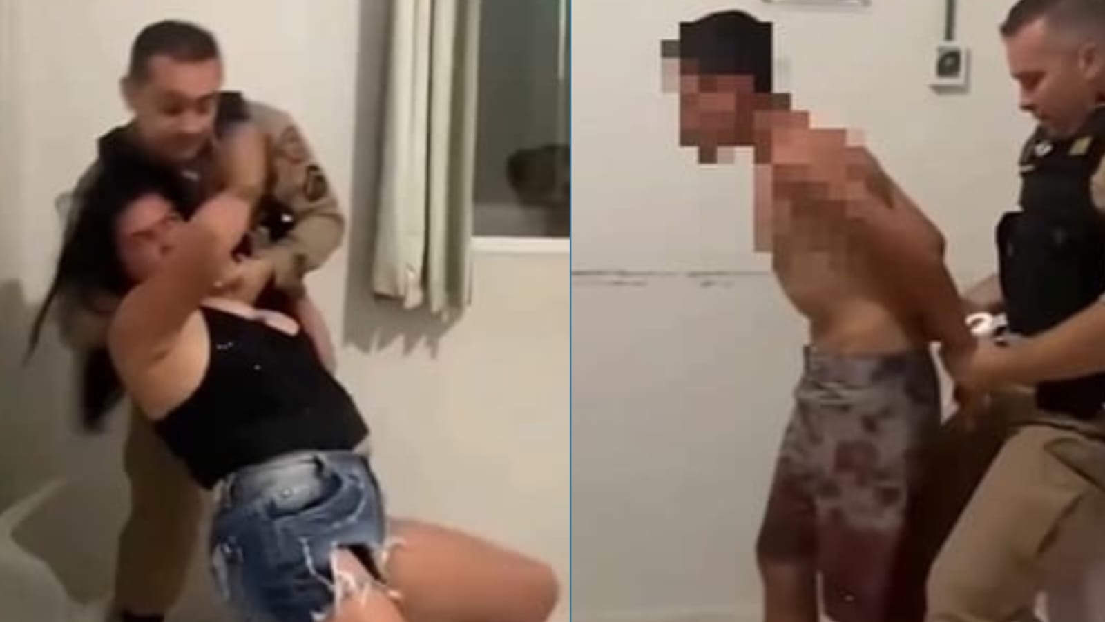 Nas imagens divulgadas, a mulher parte para cima de um policial militar. “Não me põe a mão”, grita a mãe do jovem em luta corporal com o policial. “Tinha que ser uma polícia mulher. Para de bater nela, para.”, falou a outra pessoa que estava na sala.