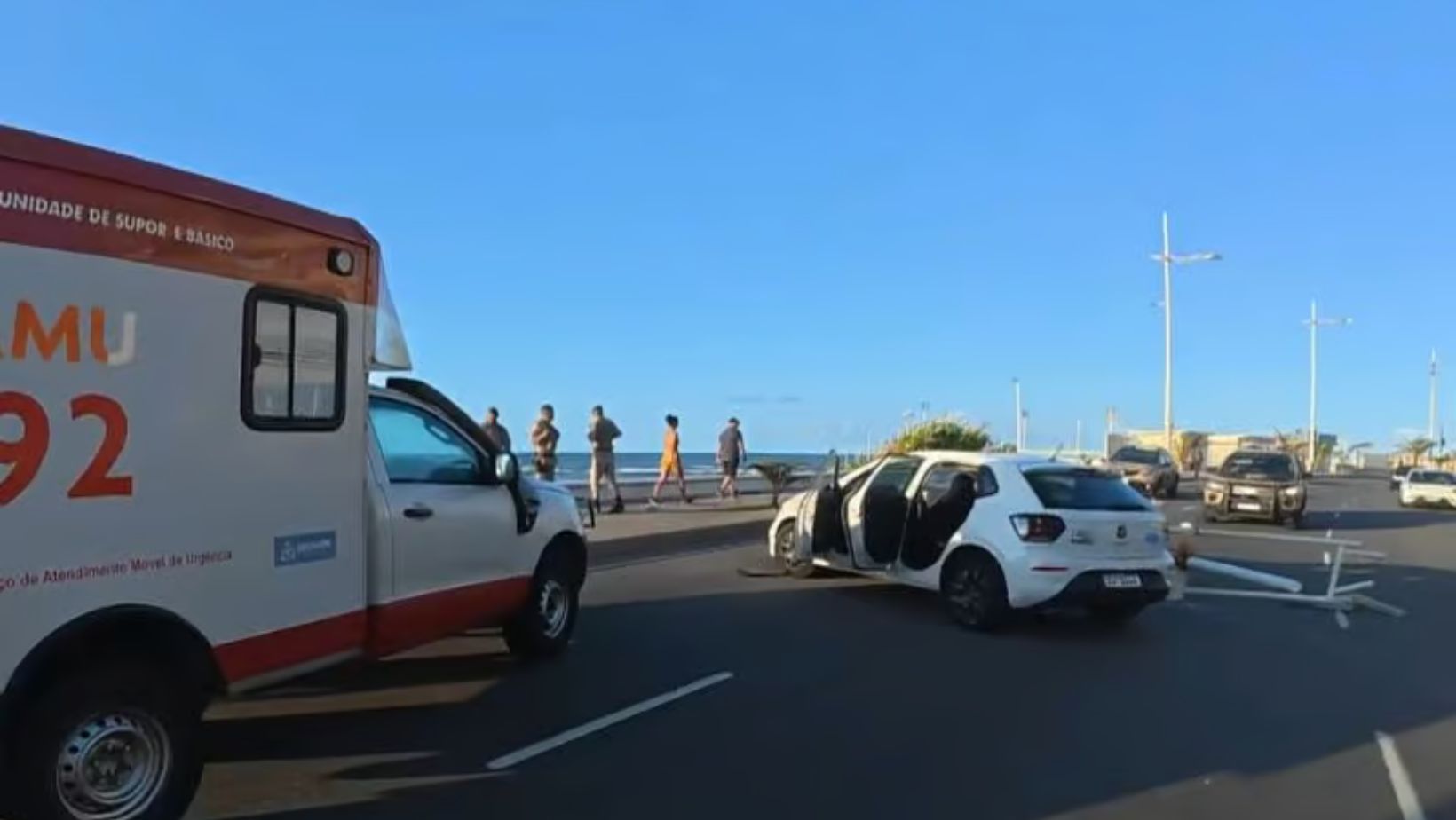 Haviam duas pessoas a bordo do veículo, que capotou algumas vezes e colidiu com um poste de iluminação pública. O condutor ficou ferido.
