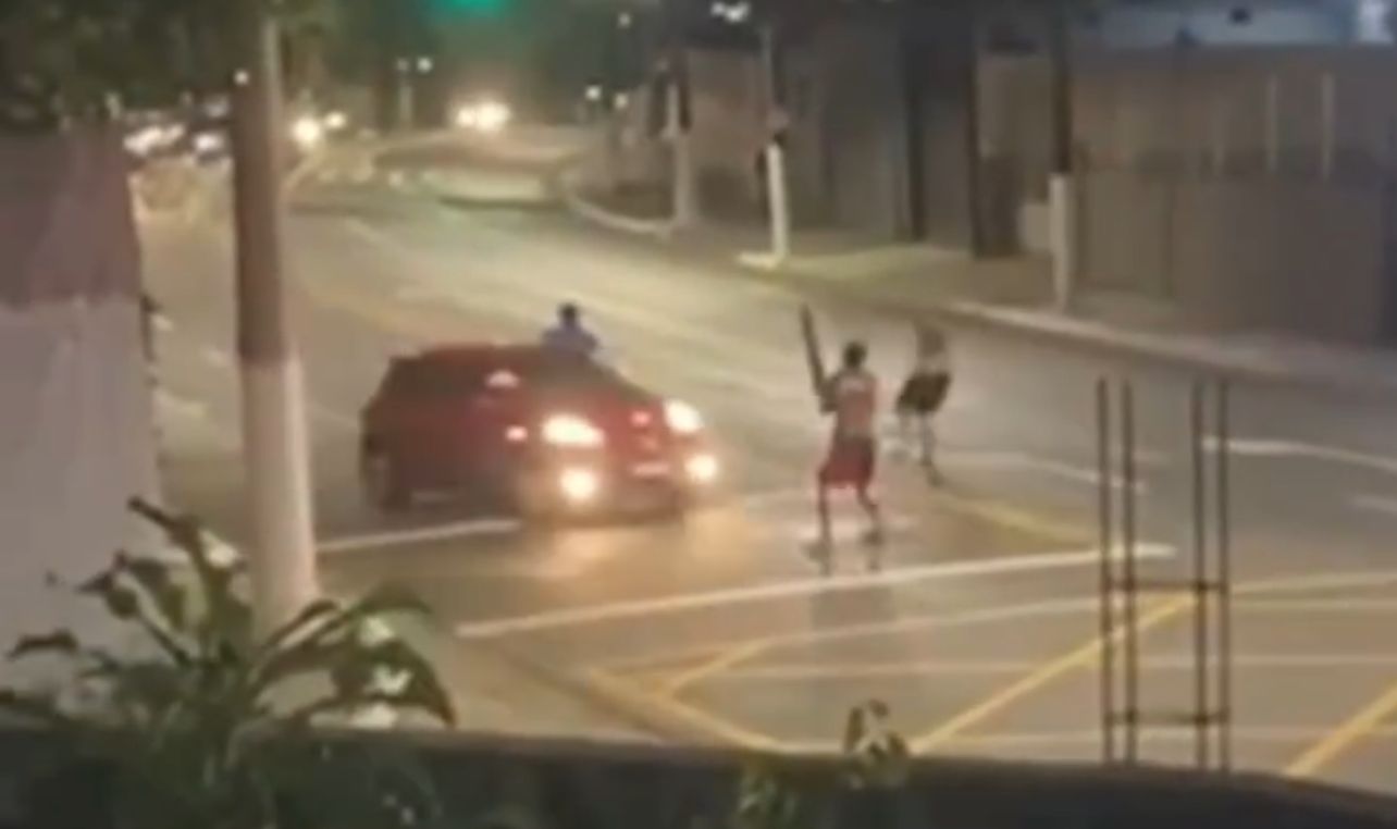 Um motorista estava parado no semáforo da Avenida José Fornari, em São Paulo, quando viu três homens correndo. Um deles segurava um pedaço de madeira e perseguia outro, que tentava fugir. Ao imaginar que se tratava de um assalto, o condutor avançou com o veículo e atropelou o homem que portava o objeto.