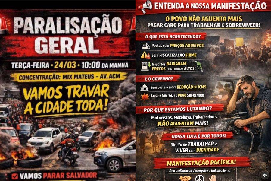 A convocação foi divulgada pelo perfil do Instagram ratosdapistassa, que reúne motoristas e entregadores por aplicativo. Segundo a organização, o ato deve seguir em direção ao Centro Administrativo da Bahia (CAB).