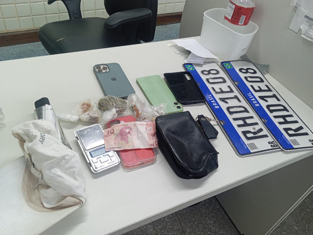 Buscas foram realizadas e o carro com os quatro homens localizados. Houve troca de tiros e dois deles conseguiram fugir. Durante a fiscalização, os suspeitos foram detidos com dois celulares, uma bolsa com porções de cocaína e crack, dinheiro e duas placas de veículo.