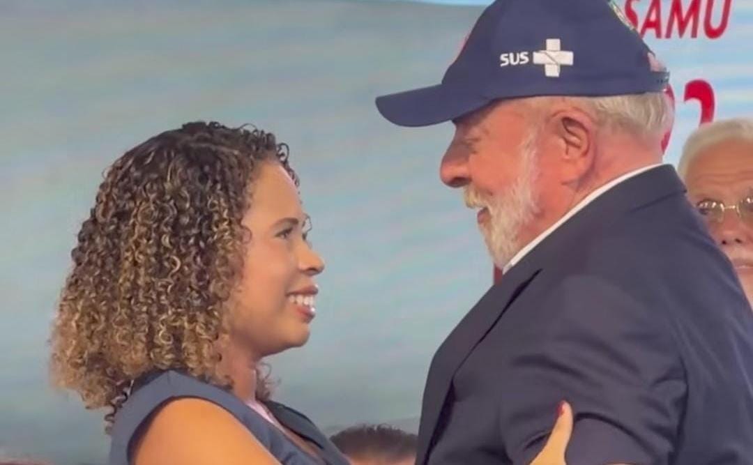 A prefeita de Gandu, na Bahia, Daiana Santana, exaltou o presidente Lula durante a cerimônia de entrega de equipamentos do SAMU, no Parque de Exposições de Salvador, nesta sexta-feira (6).