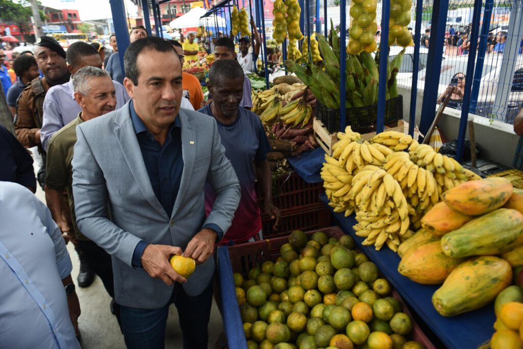 O prefeito Bruno Reis e Décio Martins, secretário municipal de Ordem Pública (Semop), inauguraram um camelódromo equipado com cobertura isotérmica e capacidade para cerca de 30 ambulantes no Largo do Luso, em Plataforma, Subúrbio de Salvador, nesta terça-feira (5).