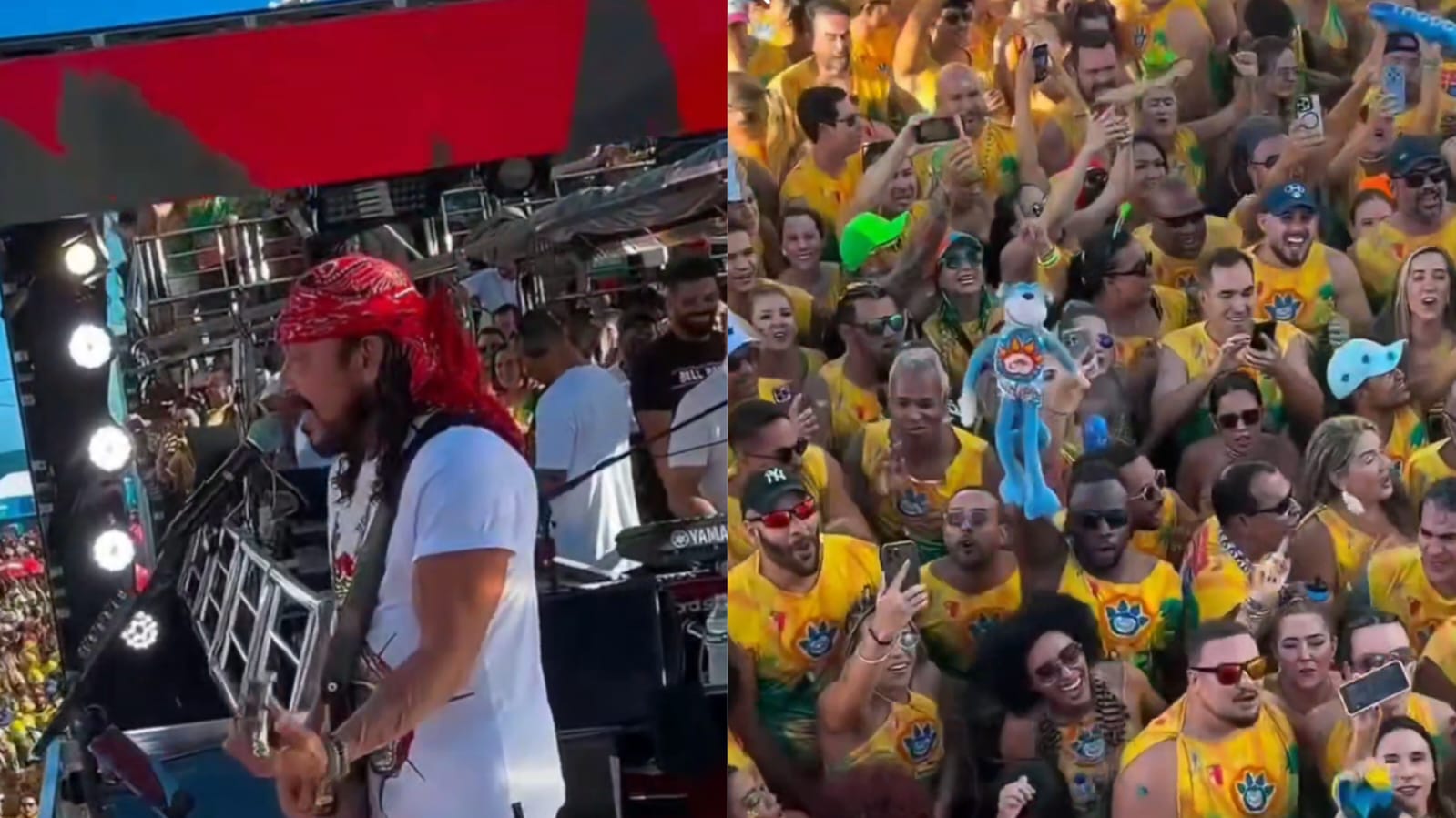 Pelo Bloco Camaleão, o início da apresentação do artista teve um pequeno atraso por conta de um problema no carro de apoio do Olodum.