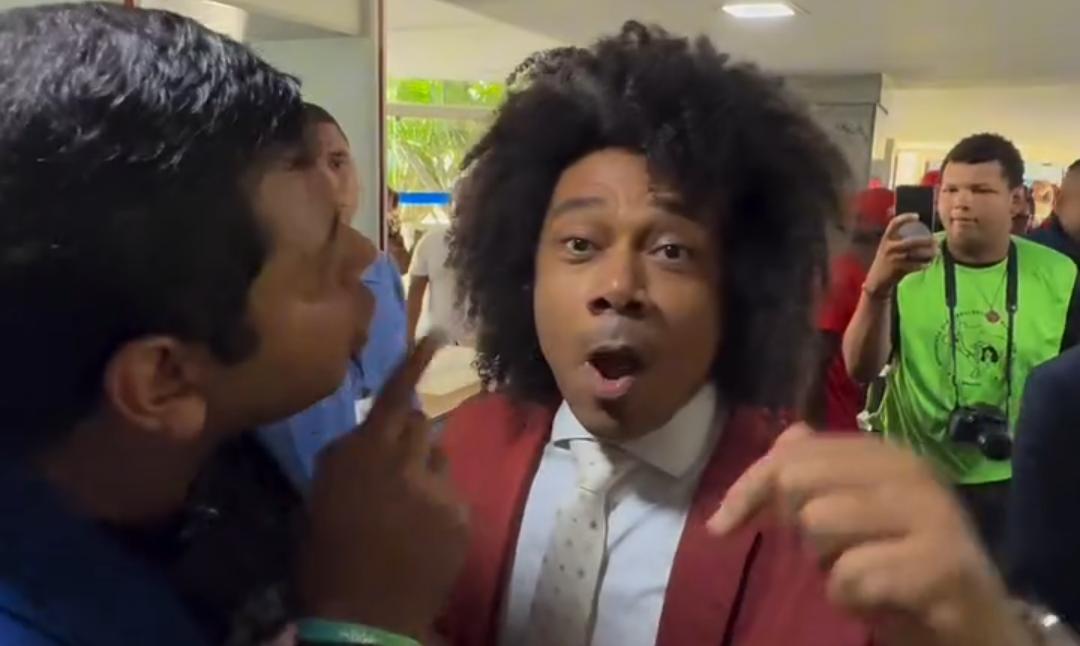 O advogado e palestrante Marinho Soares, envolvido em pautas da esquerda, também se envolve na confusão, chegando a bater boca com o deputado sobre a reforma agrária e o salário mínimo da Venezuela.