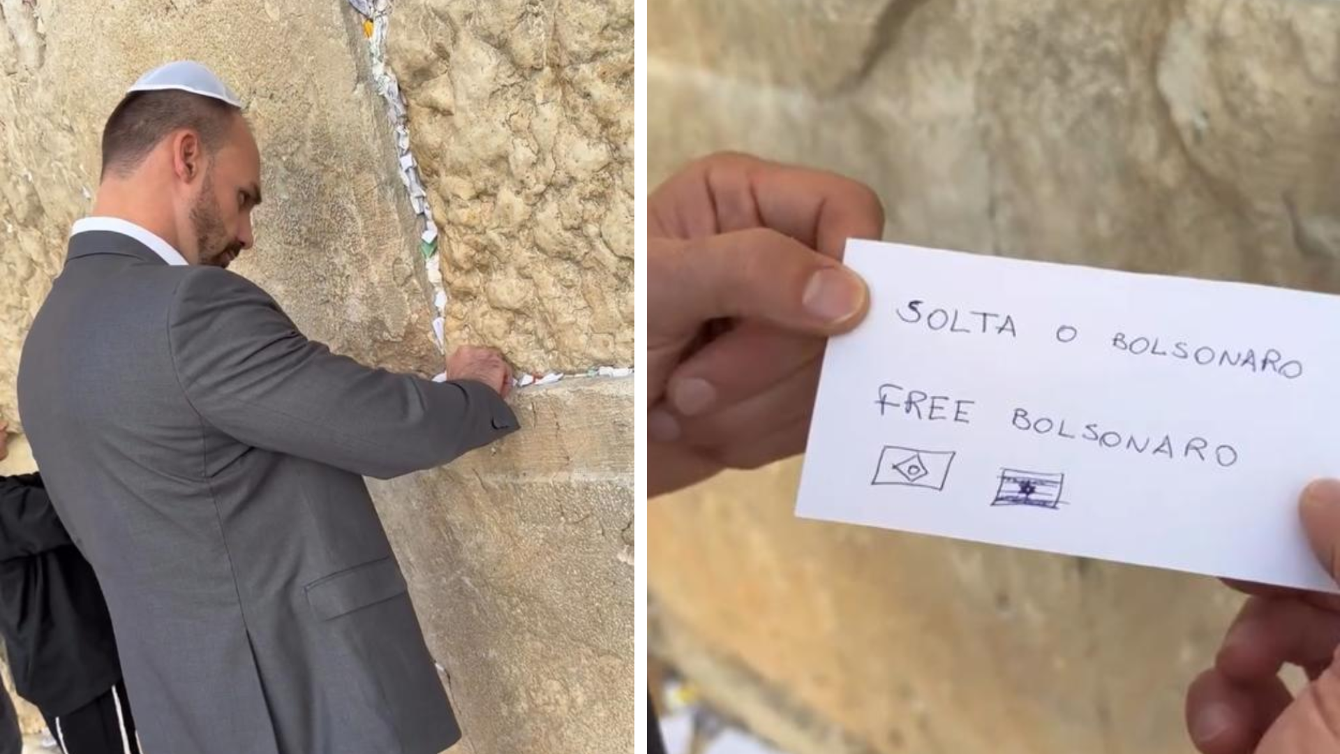 Vídeo: Eduardo Bolsonaro vai ao Muro das Lamentações e deixa pedido “Solta o Bolsonaro”