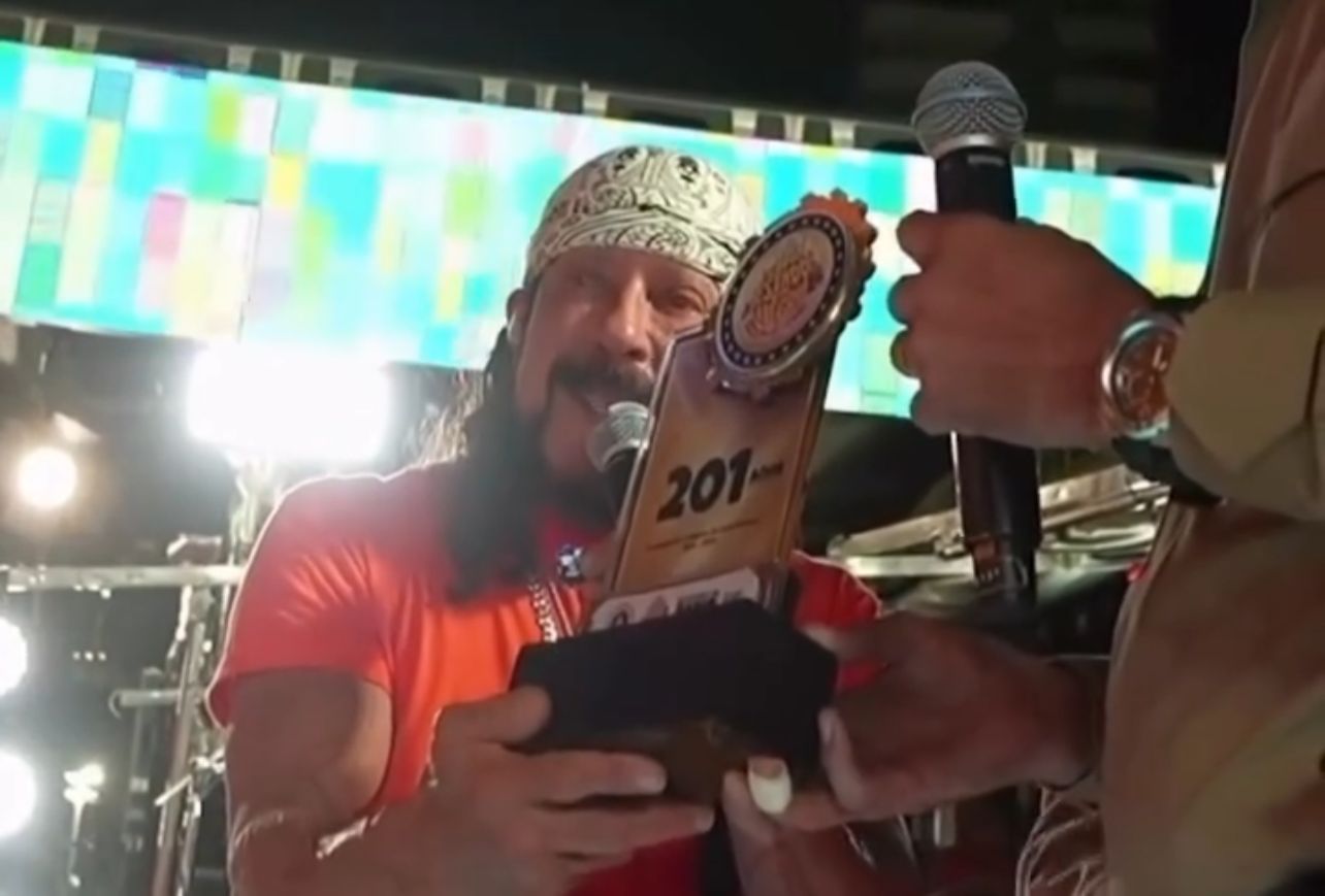 O cantor Bell Marques recebeu uma homenagem especial em celebração aos 201 anos da Polícia Militar da Bahia. Em cima do trio elétrico, o artista foi agraciado, nesta terça-feira (17), com uma honraria entregue pelo comandante-geral da corporação, coronel Magalhães, em reconhecimento à sua trajetória e contribuição para a cultura baiana.