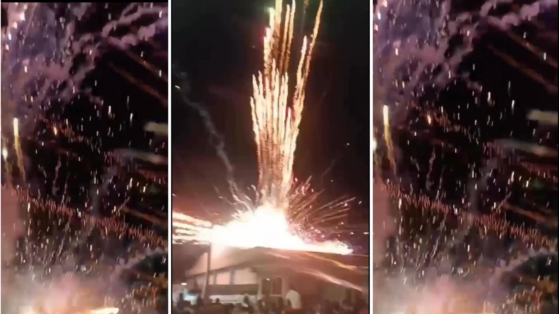 Imagens do evento mostram os fogos de artifício explodindo de cima do telhado de um imóvel onde funcionam algumas secretarias da prefeitura, local que fica em frente à Praça Municipal Guido Giazomazzi. Além do público, os fogos também atingiram veículos que estavam estacionados próximos, que sofreram danos com o impacto.