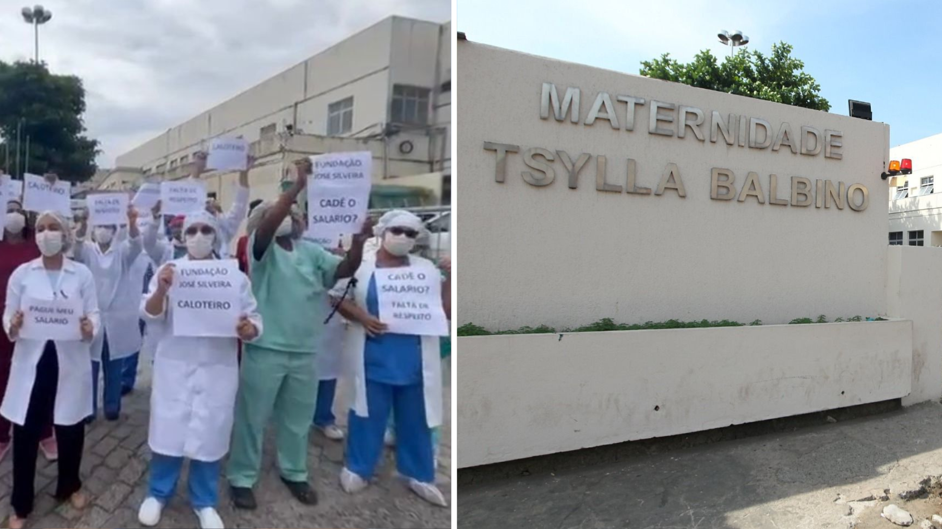 Funcionários da Fundação José Silveira que atuam na Maternidade Tsylla Balbino, vinculada à Secretaria da Saúde da Bahia (Sesab), realizaram um protesto nesta quarta-feira (19) em frente à unidade para cobrar o pagamento do salário de outubro. Durante a manifestação, os trabalhadores exibiram placas com mensagens como “Cadê o salário?”, “Pague o meu salário” e “Fundação José Silveira caloteira”.