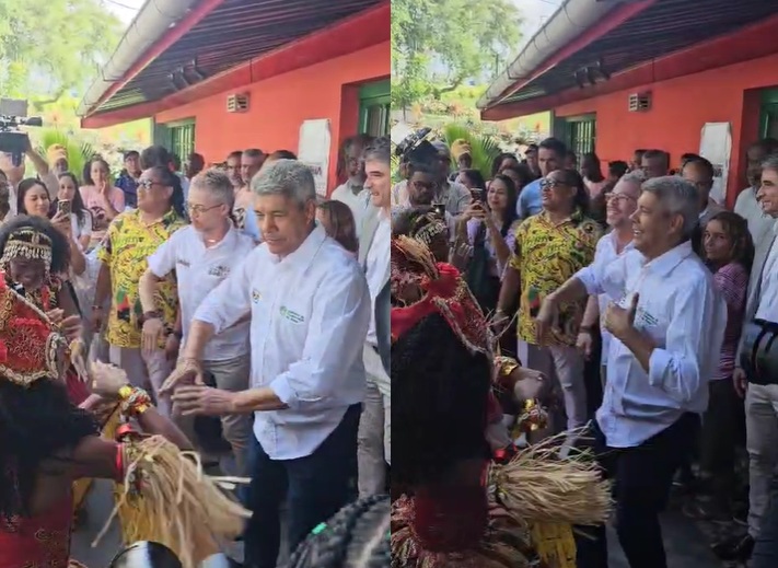 O governador Jerônimo Rodrigues se empolgou durante entregas no Parque do Abaeté, no bairro de Itapuã, em Salvador, na manhã desta quarta-feira (3). Ao som do Malê Debalê, Jerônimo meteu dança – ou pelo menos tentou – durante cerimônia de entrega da requalificação da Casa da Música e do Centro de Atividades do Parque do Abaeté.