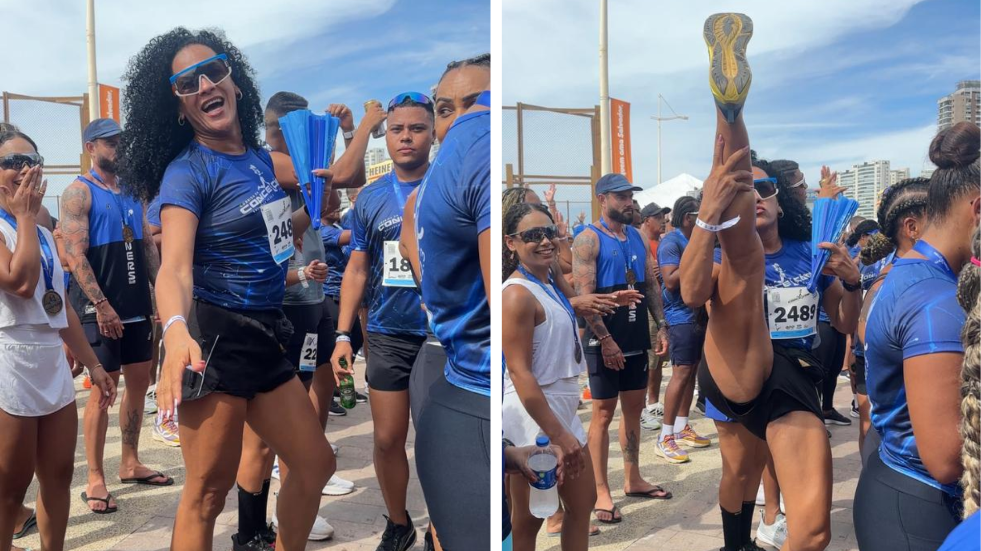 A ex-vereadora e dançarina Léo Kret do Brasil curte o show da banda É o Tchan, na orla de Patamares, na manhã desta segunda-feira (8). O evento faz parte da Corrida da Conceição, que celebra os cinco anos da Salvador FM.