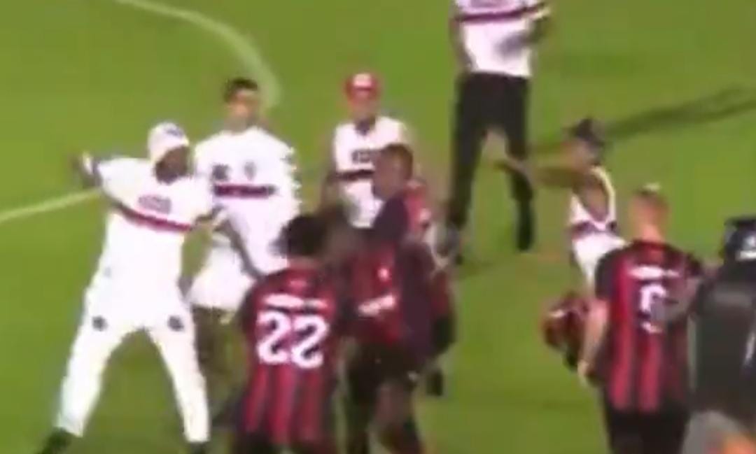 Andrezinho, atacante do Moto Club, foi cercado por três invasores. Com a confusão se formando, a polícia precisou intervir. O juiz, ao perceber que não havia mais clima para continuar a partida, optou por encerrar o jogo antes do final do tempo regulamentar.