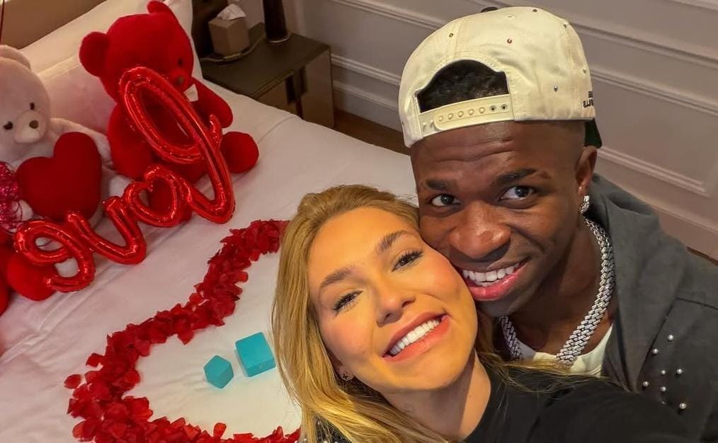 Na publicação feita na manhã desta terça (28), que já conta com mais de oito milhões de curtidas e 920 mil comentários, Vini Jr. e Virginia aparecem juntos num quarto e balões vermelhos ao redor. Na legenda, a sigla ‘’VV’’, inicial dos seus respectivos nomes.